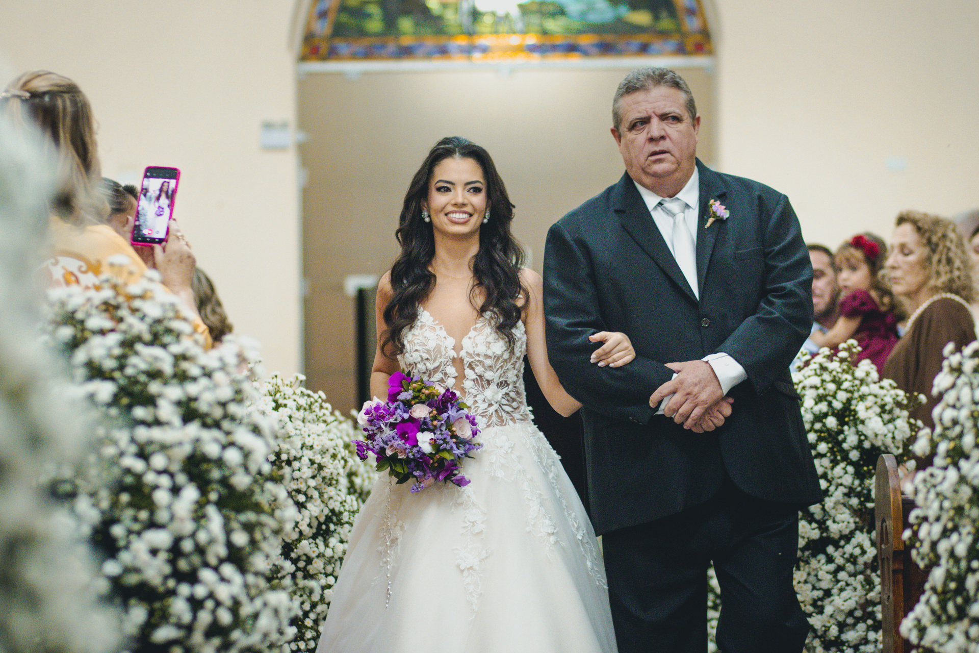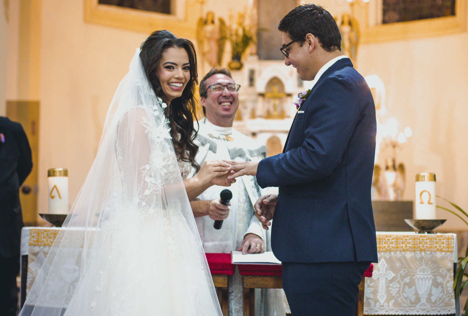 A cerimônia na imponente Igreja Matriz de Itajobi foi de tirar o fôlego. Entre a fé e a arquitetura clássica, o “sim” deles ecoou com uma emoção que contagiou a todos.